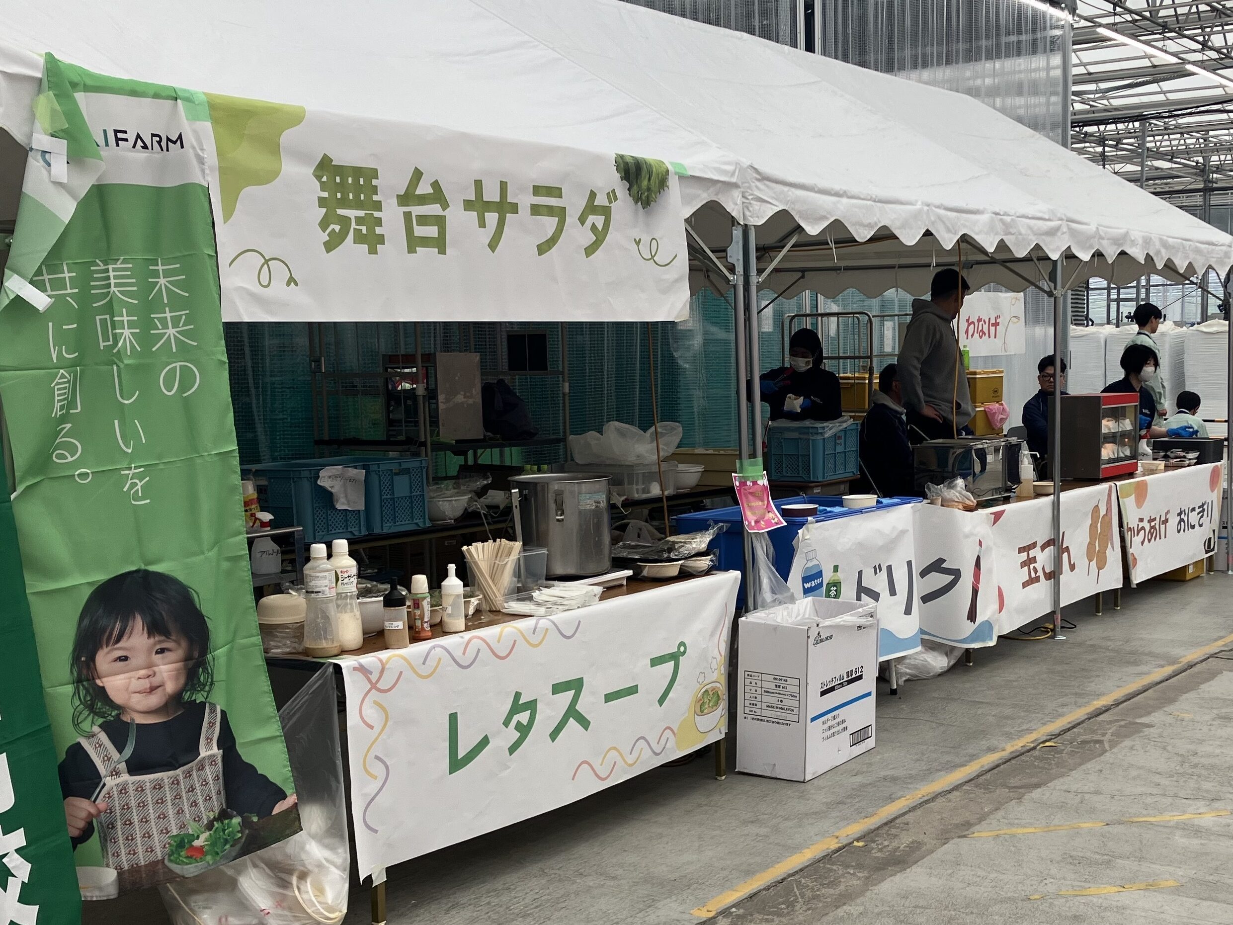 本社工場メンバーにご協力いただき、体の芯から温まるレタススープや舞台オリジナルサラダをご提供。多品種のレタスを楽しめるサラダは、新鮮で美味しいと何度もお代わりしてくれる方もいました!!